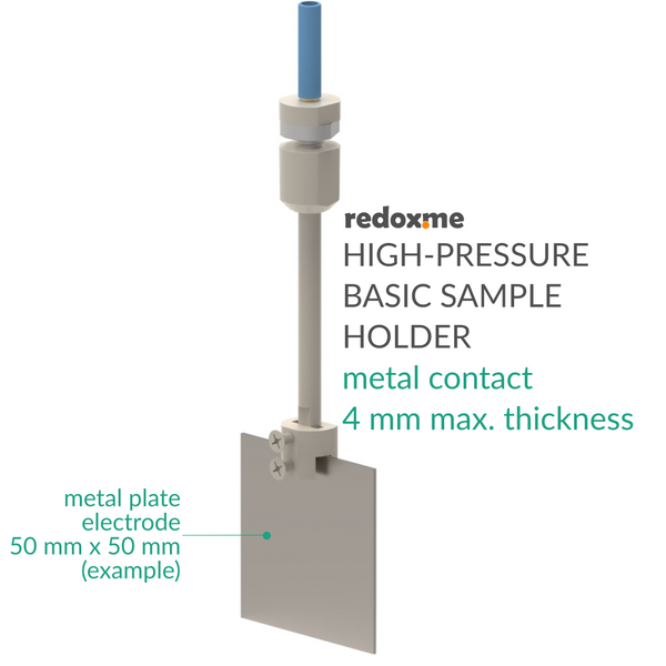 The High-Pressure Basic Sample Holder is a high-pressure variant of the popular Basic Sample Holder. In this design, a metal wire serves as the electrical conductor between the electrode material, either free-standing or deposited on a substrate, and the external circuit.